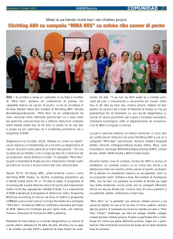 Diagnostica na October 2024, Gilliany ta conta su experi- campaña “Mira Nos” partnernan: Horacio Oduber Hospital