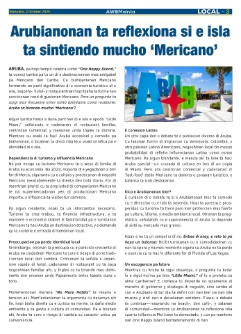 aki, Aruba ta core e riesgo di cambia su caracter unico pa cuanto influencia Mericano ta demasiado, y con pa mantene