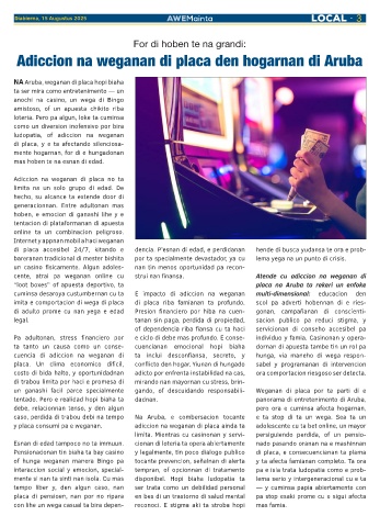 mente si nan ta sinti nan isola. Cu mas disponibel. Hopi biaha ludopatia ta lema serio y intergeneracional cu e ta