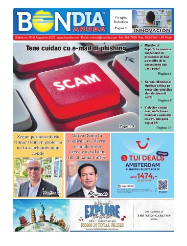 Diabierna 15 di Augustus 2025 www.bondia.com Email: noticia@bondia.com Tel: 582-7800 Fax: 582-7044 1,75 Florin
