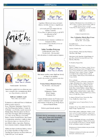 tabata un gran consuelo.                                   Aurora Funeral Home.                    Morales
