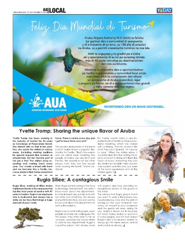 areas, including making petitions tination for Yvette. “that’s the reason tu casa.’ When the visitors arrive, it as a tour guide and bus drive for Chogogo what makes Aruba such a popular desti-