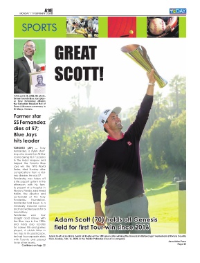 he had four separate stints Adam Scott, of Australia, hoists his trophy on the 18th green after winning the Genesis Invitational golf tournament at Riviera Country