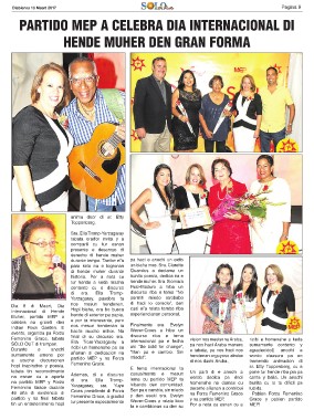 Dia 8 di Maart, Dia Sra. Ella Tromp-Yarzagaray pa haci e anochi un exito vision nos mester na Aruba, ricibi e homenahe a keda
