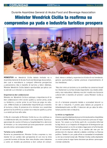 e colaboracion aki y ta consider’e uno importante. E preocu- General di AFBA. Minister Cicilia a anuncia e proceso di regu-