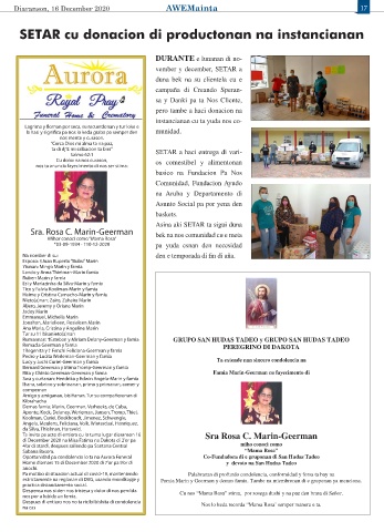 Oportunidad pa condolencia lo ta na Aurora Funeral Co-Fundadora di e gruponan di San Hudas Tadeo