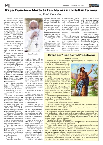 djarason ei 9 di desèmber e skuridat mas intenso. grita”. Papa a insistí ku «ora ta
