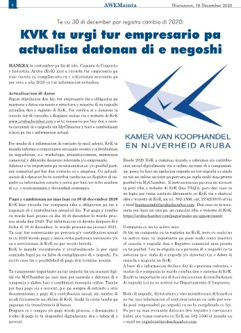 Pago y cambionan no mas laat cu 30 di december 2020 riba e website di KvK, na tel. 582-1566, ext. 27/42/30/35 of via