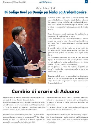 oranje. Esaki Prome Minister Mark Rutte a informa