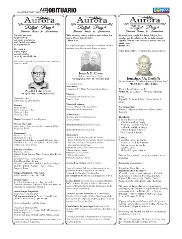 Color pa despedida ta Color allegre. Aurora Funeral Home on Thursday October 23,