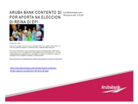 Earubianonews.com PR Cost in Afl. 172,50 http://earubianonews.com/aruba-bank-contento- di-por-aporta-na-eleccion-di-reina-di-epi/