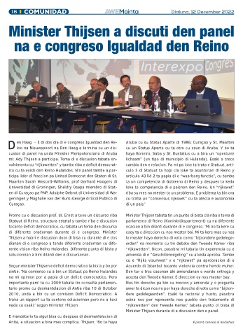 en Haag – E di dos dia di e congreso Igualdad den Re- Aruba cu su Status Aparte di 1986; Curaçao y St. Maarten