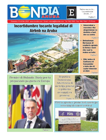 Diasabra 10 di Mei 2025  www.bondia.com  Email: noticia@bondia.com  Tel: 582-7800  Fax: 582-7044 1,75 Florin
