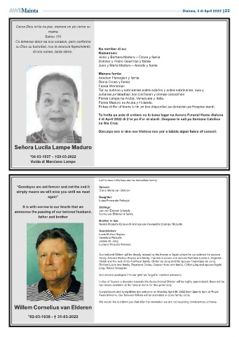 cu Dios su boluntad, nos ta anuncia fayecimiento Na nomber di su: