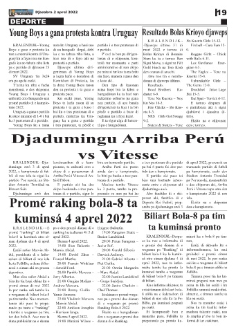 nosé e siman aki na prensa – Arnold Ford. 21:00 Oswin Margarita mabu tambe ku pronto lo bola-8 pa e timnan afi liá na