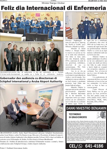 sion di Aruba Airport Authority) riba dialuna merdia 9 di mei 2022 a haci un bishita di