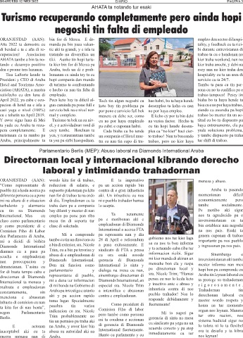 directornan di Diamonds representante di pueblo, sinembargo directornan di pensa cu nos lo keda keto Aruba tin leynan laboral cu
