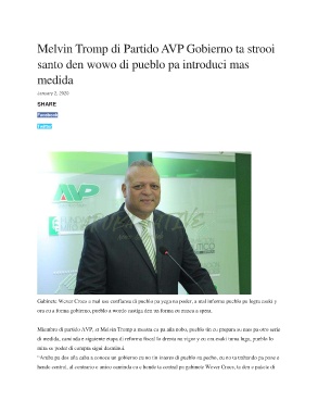 Miembro di partido AVP, sr Melvin Tromp a mustra cu pa aña nobo, pueblo tin cu prepara su mes pa otro serie