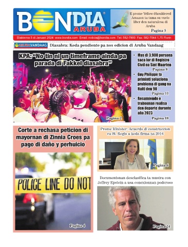 Diabierna 5 di Januari 2024 www.bondia.com Email: noticia@bondia.com Tel: 582-7800 Fax: 582-7044 1,75 Florin