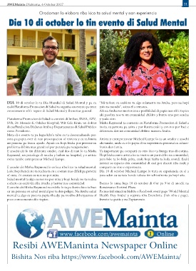 cu un persona su salud mental por ta den peliger. Na Aruba salud Pa mas informacion bishita e Facebook event page ‘World Mental