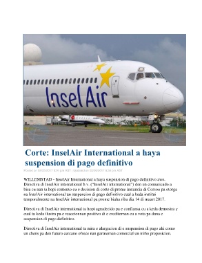 WILLEMSTAD - InselAir International a haya suspension di pago definitivo awe.