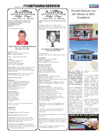 Johan y †Irena Kelly Sr vuido Jose Semeleer y famia 7:30 PM – Scol di Arte y comunidad por ta na