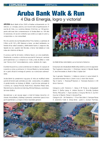 E ambiente positivo y union a domina tur e 4 dianan. E clausura di E resultado di e Aruba Bank Walk & Run 2025 ta como lo siguiente: