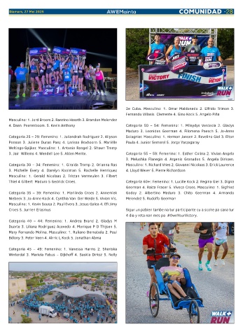 4. Daan Peerenboom. 5. Kevin Anthony Categoria 50 – 54: Femenino: 1. Mileydys Verdecia 2. Gladys
