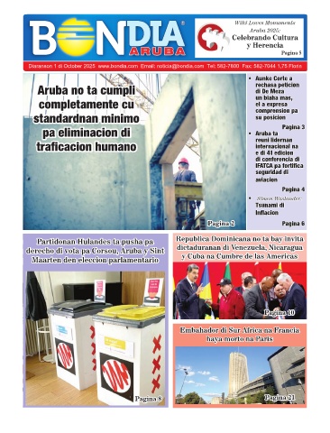 Diaranson 1 di October 2025  www.bondia.com  Email: noticia@bondia.com  Tel: 582-7800  Fax: 582-7044 1,75 Florin