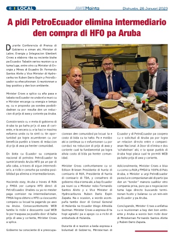 na Aruba. Consecuentemente WEB di Hulanda na Ecuador Diego Almeida Concluyendo, Minister Croes a enfatisa