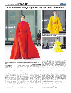 The Carolina Herrera collection is modeled during Fashion Week in New York, Monday, Feb. 10, last second ... things hap- The show brought an eclec-