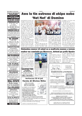 duna bon bini na otro miem-  un informante, cu pa moti-  di “no t’ami a bisa”, cu al-  anochi, cuminsando pa 8’or,