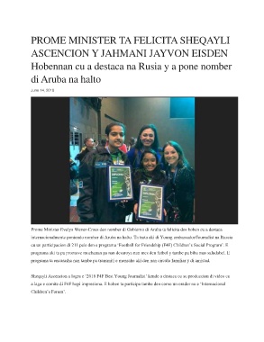 internacionalmente poniendo nomber di Aruba na halto. Ta trata aki di Young ambassador/Journalist na Russia