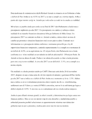 presupuesto 2017 cu contrario na loke sr. Arends ta indica, tabata rekeri un nota di