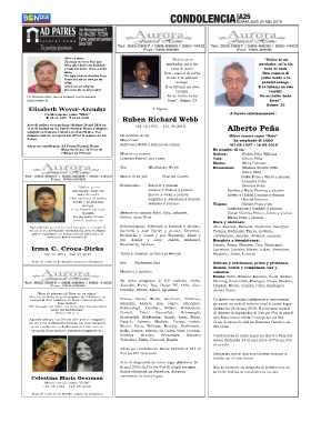 Condolencia por wordomanda riba nos Yiu: †Rubencito Webb Rumannan: †Marina Wester Peña