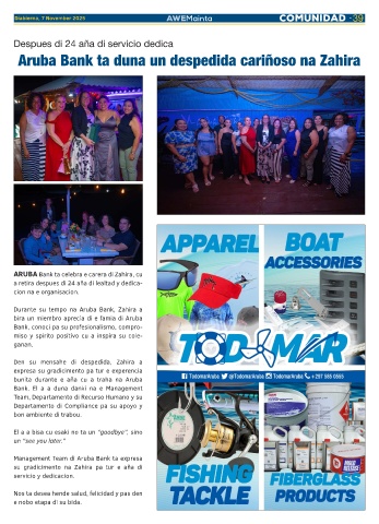Aruba Bank ta duna un despedida cariñoso na Zahira