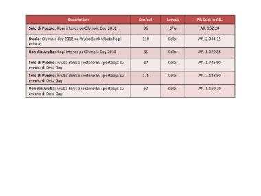 Diario: Olympic day 2018 na Aruba Bank tabata hopi 110 Color Afl. 2.044,15