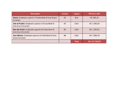 Diario: Empleado superior di Aruba Bank di luna di juni 65 B/w Afl. 885,15