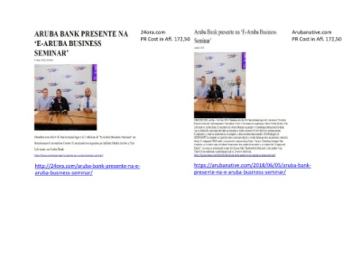 24ora.com Arubanative.com PR Cost in Afl. 172,50 PR Cost in Afl. 172,50 http://24ora.com/aruba-bank-presente-na-e- https://arubanative.com/2018/06/05/aruba-bank- aruba-business-seminar/ presente-na-e-aruba-business-seminar/