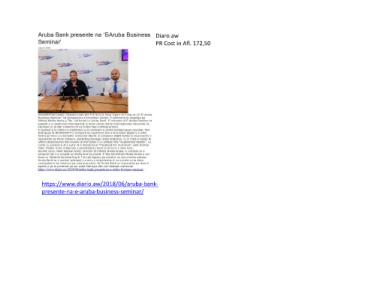 Diaro.aw PR Cost in Afl. 172,50 https://www.diario.aw/2018/06/aruba-bank- presente-na-e-aruba-business-seminar/