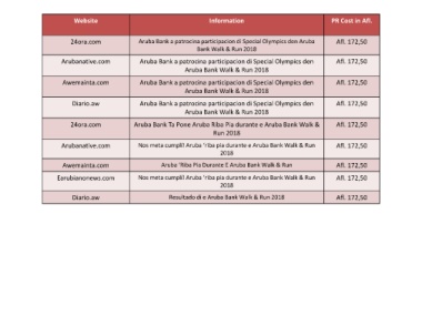 Website Information PR Cost in Afl.