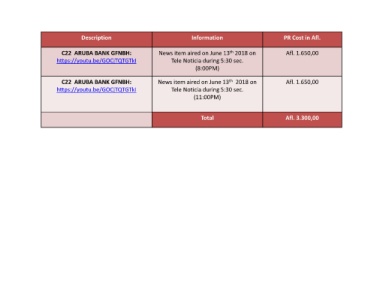 C22 ARUBA BANK GFNBH: News item aired on June 13 2018 on Afl. 1.650,00