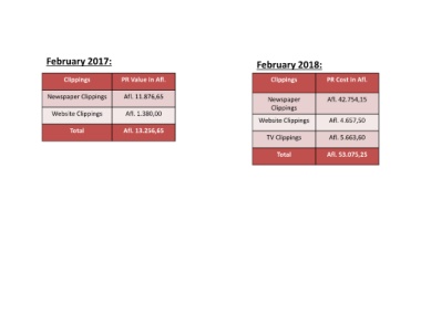 Clippings PR Value in Afl. Clippings PR Cost in Afl.