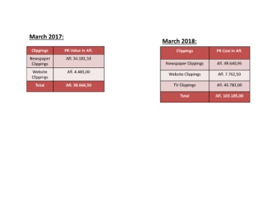 Clippings PR Value in Afl. Clippings PR Cost in Afl.