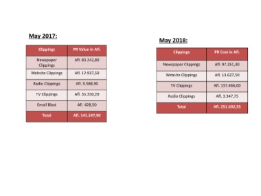 Clippings PR Cost in Afl.