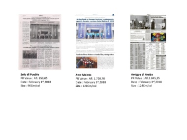 Solo di Pueblo Awe Mainta Amigoe di Aruba PR Value : Afl. 859,05 PR Value : Afl. 1.720,70 PR Value : Afl.1.045,35 rd st st Date : February 1 ,2018 Date : February 1 ,2018 Date : February 3 ,2018 Size : 90Cm/col Size : 120Cm/col Size : 124Cm/col