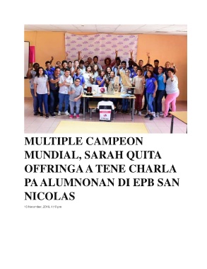 MULTIPLE CAMPEON MUNDIAL, SARAH QUITA OFFRINGA A TENE CHARLA PA ALUMNONAN DI EPB SAN NICOLAS 13 November, 2019, 4:18 pm 97