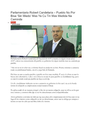 Parlamentario Robert Candelaria di fraccion di AVP a mustra cu algun siman atras