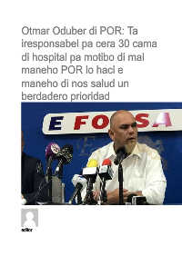 Otmar Oduber di POR: Ta iresponsabel pa cera 30 cama di hospital pa motibo di mal maneho POR lo haci e maneho di nos salud un berdadero prioridad editor