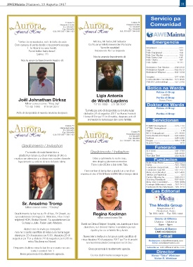Acto di despedida lo wordo anuncia despues. diahuebs 24 di augustus 2017 na Aurora Funeral Pariba di Brug: